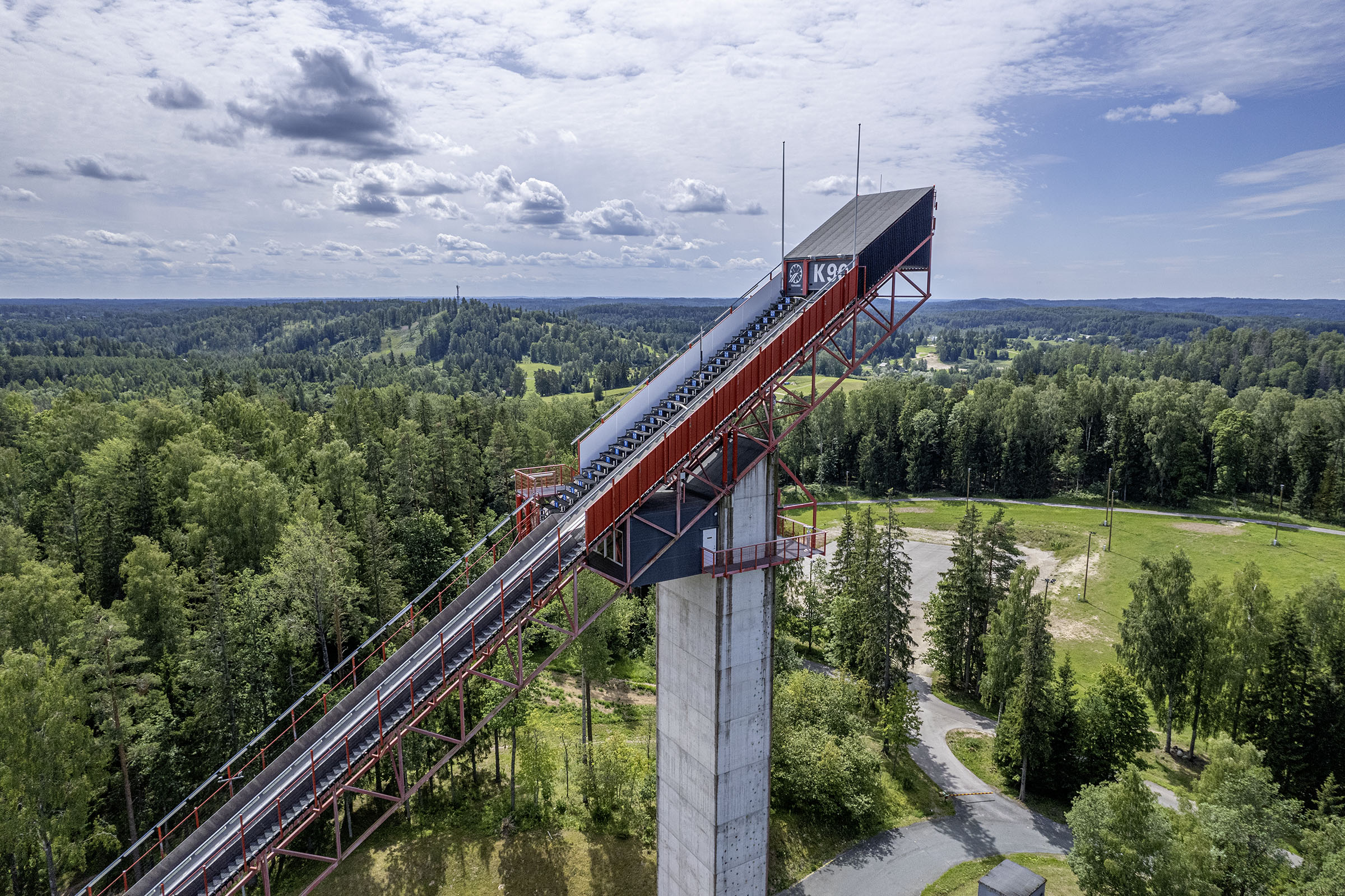 There is also the locally famous Tehvandi K90 Ski-jumping Hill, part of Tehvandi Sport Center in the Otepää Upland. In addition to the actual certified ski jump on which local athletes prepare for various competitions, as well as other sportive facilities, it hosts the second highest (34 m / 112 ft) viewing tower after Suur Munamägit.
