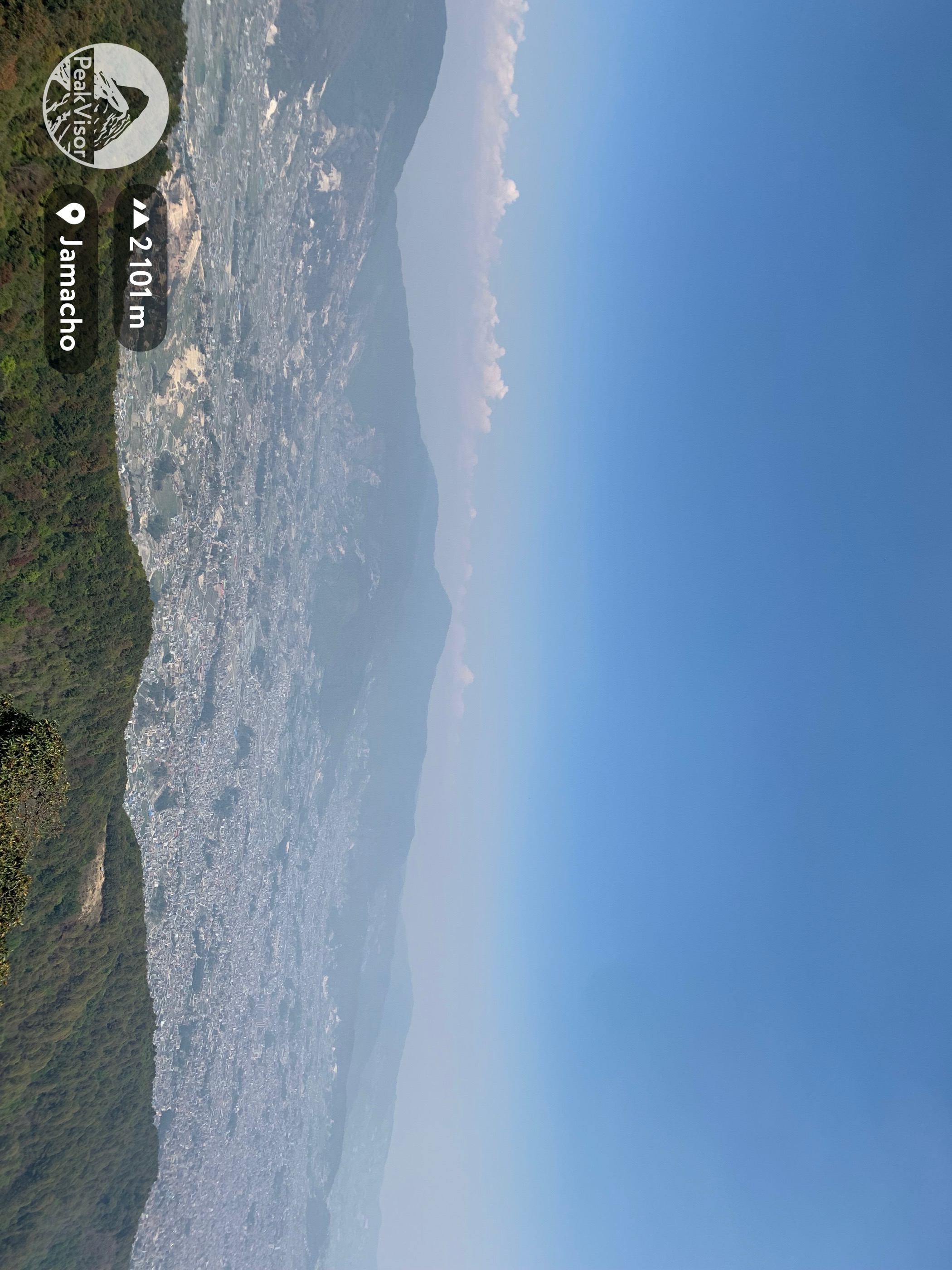 Jamacho (2,128 m / 6,982 ft) is an easily accessible day hike near Kathmandu, offering panoramic views of the Kathmandu Valley. Positioned on the northwestern edge of the valley, Jamacho is less than 5 km (3.1 mi) from central Kathmandu within the Nagarjun Forest Reserve. Near Jamacho's summit is the Jamacho Gumba, a Buddhist monastery.