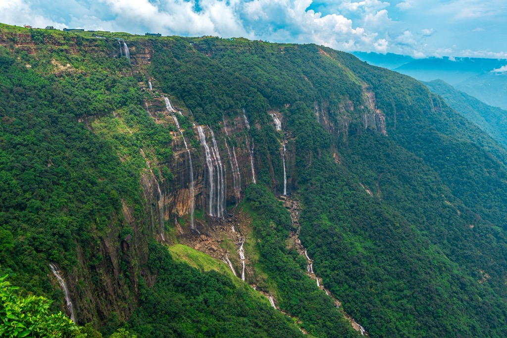 The Seven Sisters Falls, a hallmark of Meghalaya’s natural wonders, tumble over 315 meters (1,000 ft) over dramatic limestone formations amid a backdrop of saturated green rainforest. Accessible directly from Mawsmai Village in Cherrapunji, the surroundings include an intricate network of wild hiking trails, best tackled in the dry season to avoid the mud.