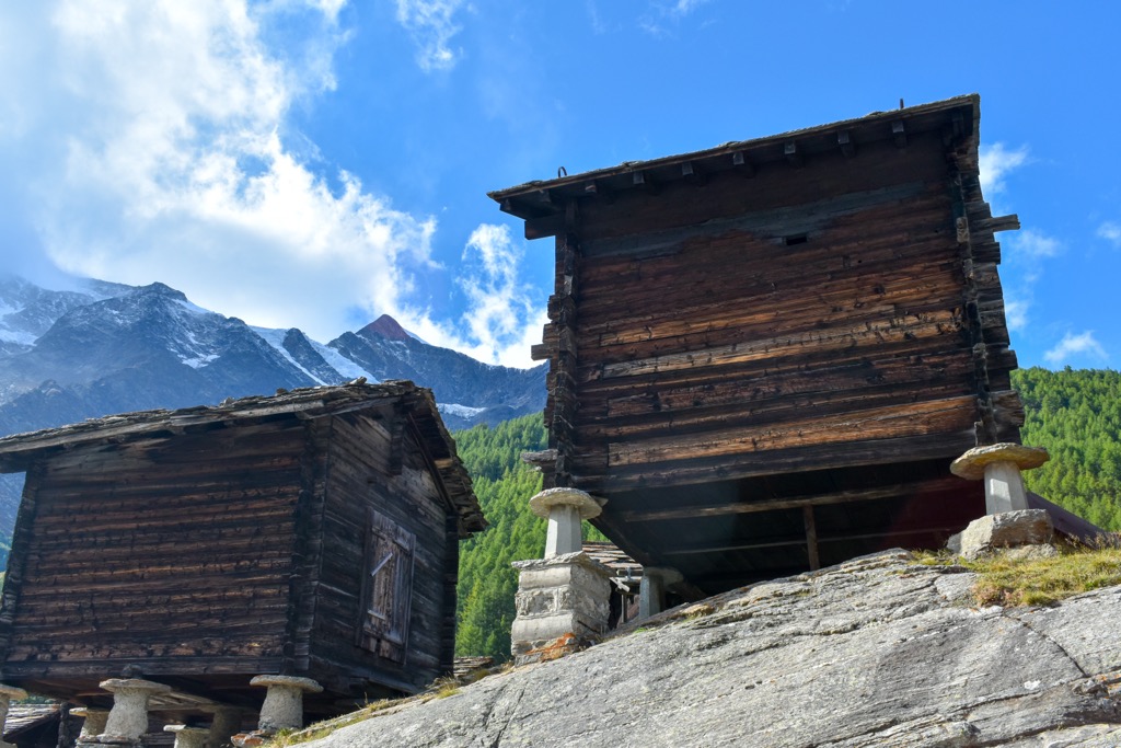 At most alpine huts, the Valais is known for its Aprikosenkuchen (apricot tart) from locally grown fruit, Walliser Roggenbrot (rye sourdough bread), Walliser Platte (local dried beef, cheese, and cornichon), and of course fondue and raclette. Traditionally, the Valaisans built stone-stilted houses to stop rodents from entering and eating their food. A meander through historic villages like Saas-Fee will reveal this ancient practice.