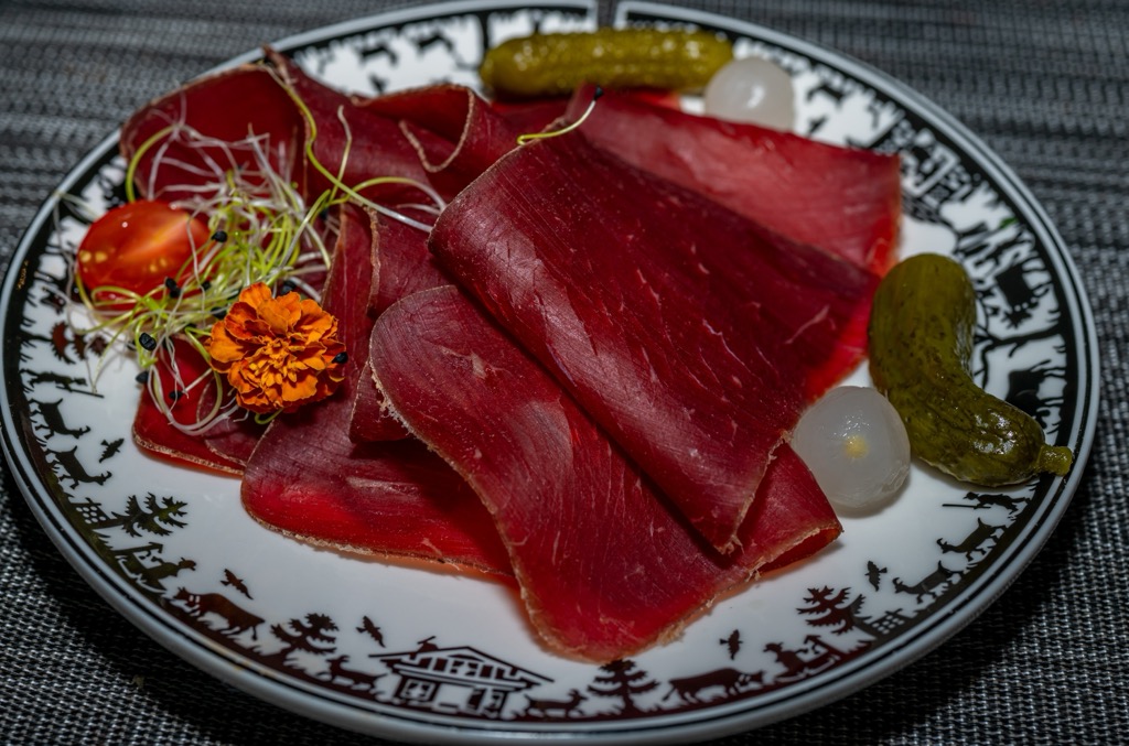 Grisons, the most expansive and easternmost Swiss canton that borders Italy, Liechtenstein, and Austria, is home to Romanche speakers, salsiz sausage, and St. Moritz. The Grisons lies deep in the Alps and imbues a true land-locked, lost feeling. Often overlooked as a culinary region, the local barley soup excites, as does the dried Bünderfleisch (cured beef) on a fresh ring of Ringbrot, a ring-shaped loaf of rye bread. A good Bünderfleisch should be dark red inside, moist, with slight marbling and a greyish rind.
