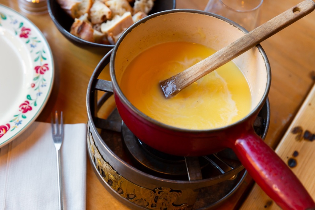 If less keen to spend, Gruyère, home of gruyère cheese and just a stone's throw away from the overpriced Saanen municipality that includes Gstaad, offers some of the best cheese fondue in Switzerland. Dine near the Gruyère castle or in any village in its vicinity. Starting at around 25 francs per person, the bubbling pots of cheese will not disappoint.