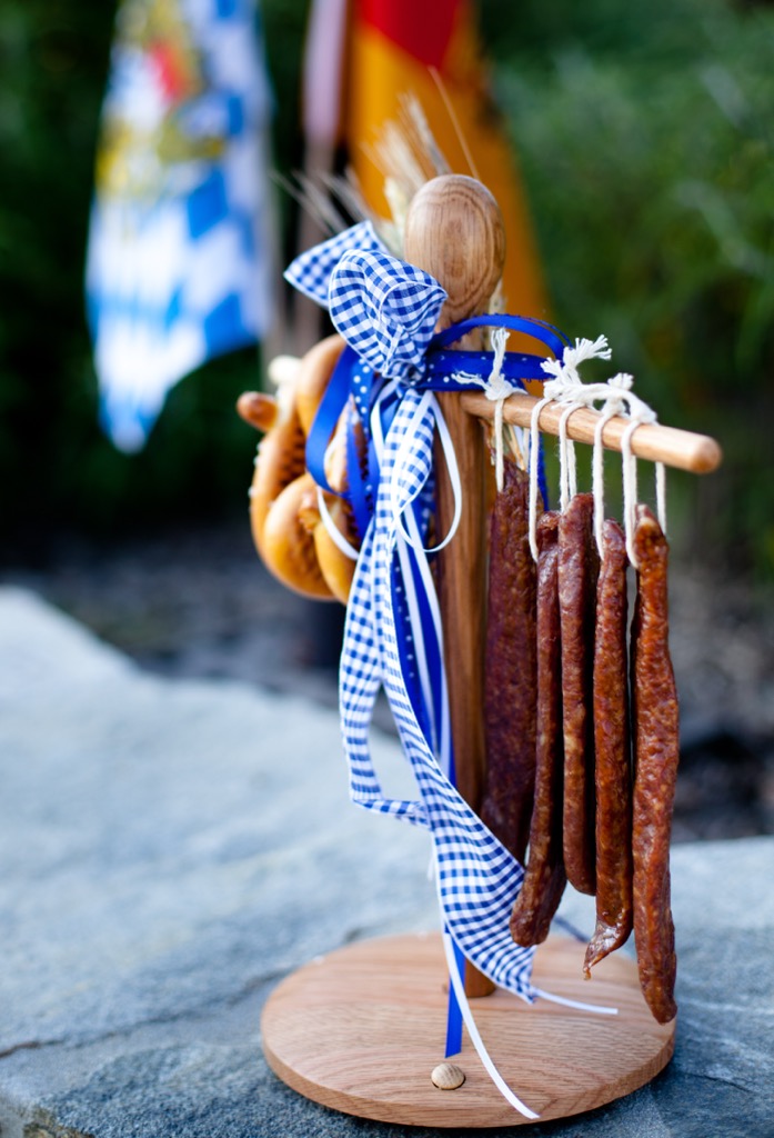 Also incredibly popular are Kartoffelsalat (potato salad), Krautsalat (cabbage salad with caraway seeds), Bretzel (fresh lye yeast pretzel), Bauernspeck (dried smoked bacon/ham), Gulaschsuppe (goulash soup), Hirsch and Wildererpfandl (assortment of venison and other game in gravy served with red cabbage, spaetzle, and lingonberries), Weißwurst (steamed veal and parsley sausage with sweet mustard), and Käsespaetzle (cheesy egg noodles with onions from the Allgäu region). Typical desserts include Apfelstrudel (apple strudel), Kaiserschmarrn (pan-fried egg pancakes with applesauce), and an assortment of stone-fruit cakes.