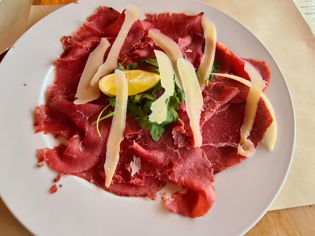 Further down south, the Trentino region is famous for more Mediterranean fare, with carne salada (a type of beef carpaccio), mortadella (a wide and often smoked salami form), and risotto al Teroldego (red wine risotto) being classics. The dumplings of South Tyrol are equally liked in this still mountainous region.