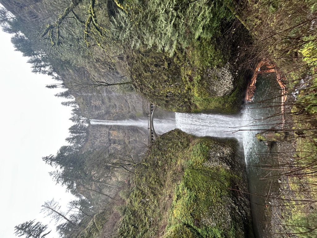 Along the way, we passed the 620-foot (189 m) Multnomah Falls, the highest waterfall in Oregon. Fed by an underground spring, Multnomah is one of the tallest year-round waterfalls in the United States, and home to a picturesque bridge dating to 1914.