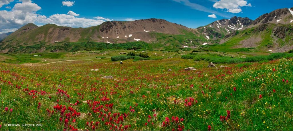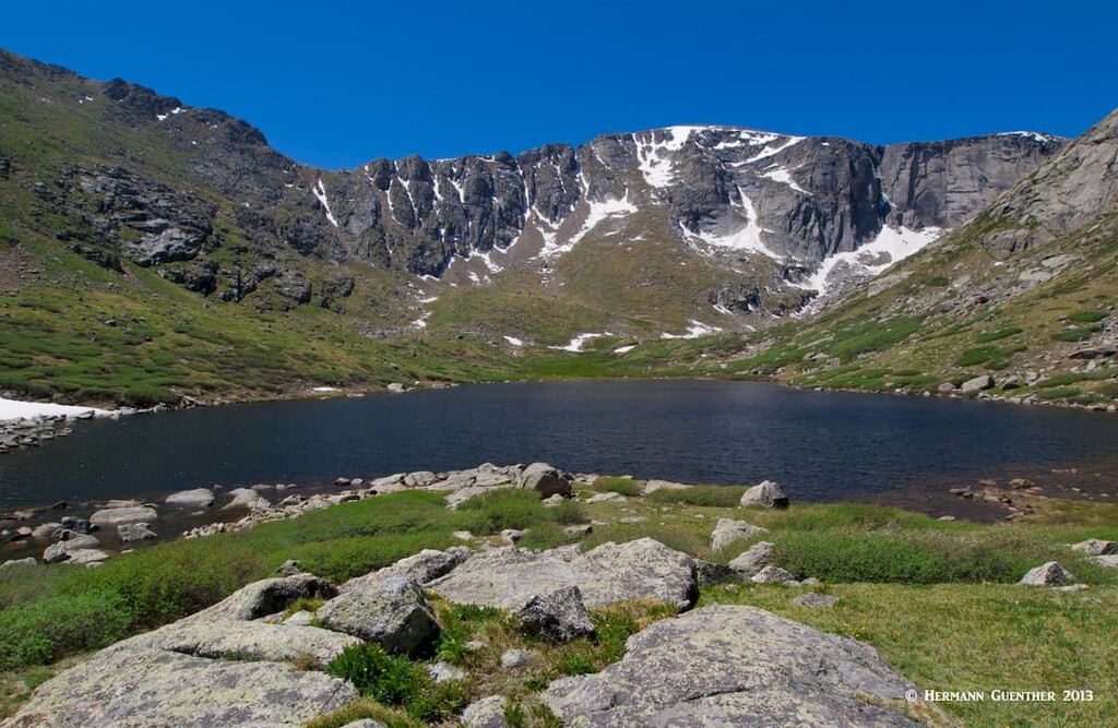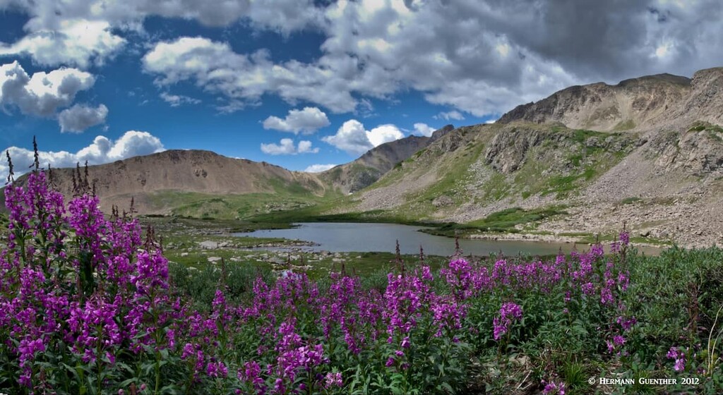 Most people just go to the lake, which these days is enough for me. But in days gone by, I did some massive hikes here. A classic is to take a branching trail near the base into the adjacent Watrous Gulch and then climb the imposing 13,574-foot Mount Parnassus (no, not the one in Greece), then continue with a fabulous ridge walk over Woods Mountain and Mount Machebeuf before eventually re-joining the main trail just below the lake. You will sleep well that night! Ah, this makes me want to put on my hiking boots right now. Hiking anywhere in this complex in early August will reward you with amazing displays of wildflowers.