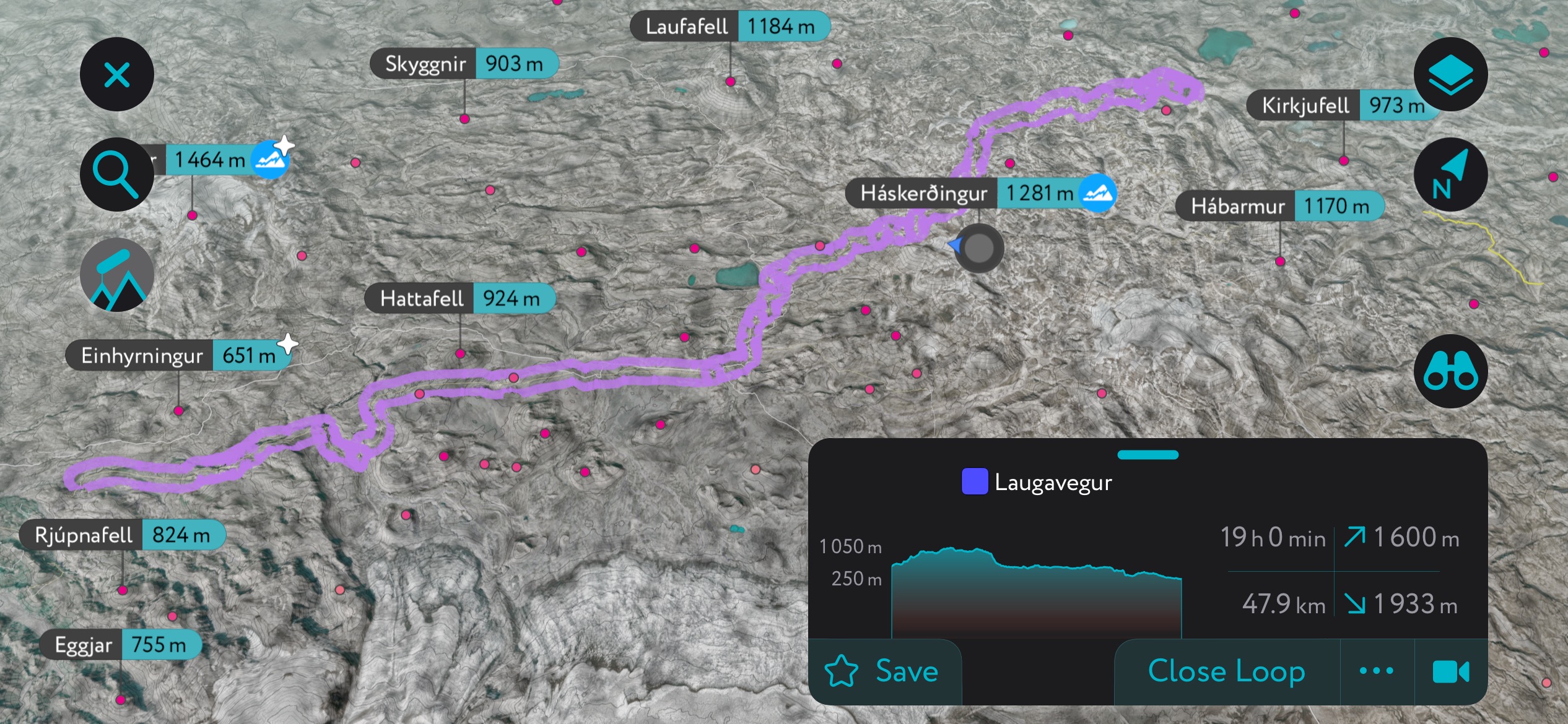 Explore Friðland að Fjallabaki with the PeakVisor 3D Map and identify its summits.
