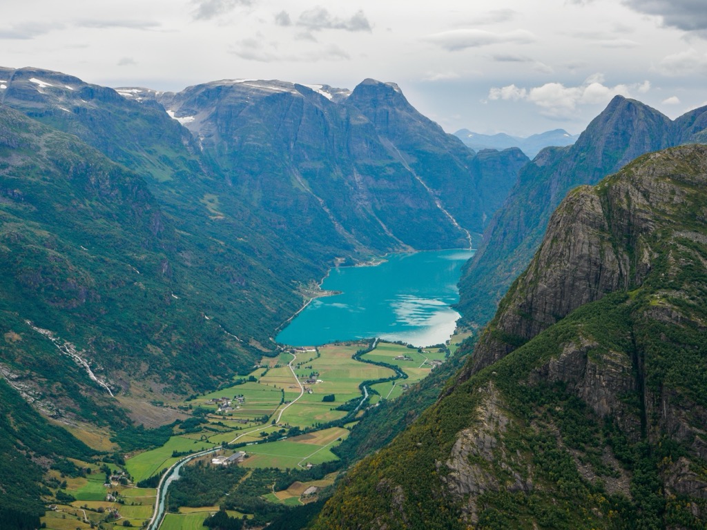 This hiking route begins by taking the Loen Skylift up above the Nordfjord. The skylift marks the steepest aerial tramway in the world. Once at the top, hikers have the option of completing this stunning loop with views of the fjord landscape throughout.