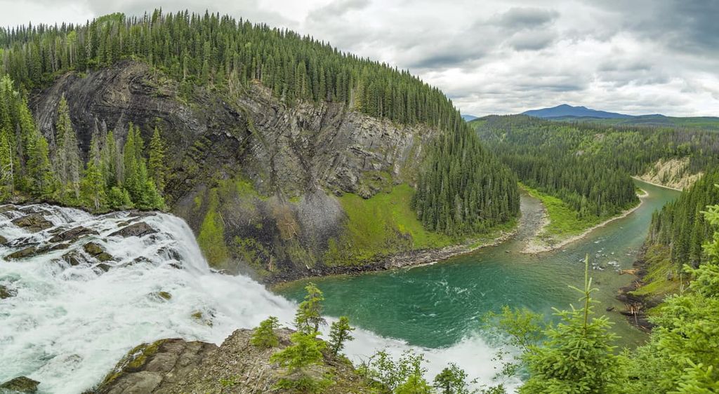 An interesting geological feature of Monkman Provincial Park is that the Murray River tumbles 60 m (197 ft) over a geological fault, creating the magnificent Kinuseo Falls. Kinuseo Falls are slightly taller than Niagara Falls; however, Niagara Falls has a significantly larger volume of water.