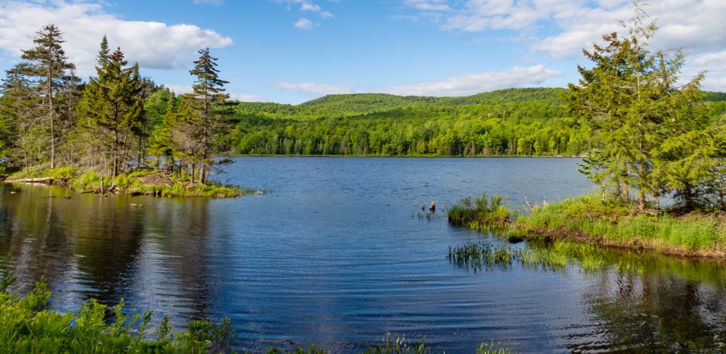 Part of the Memphrémagog subrange, the rounded mountain ridges and broad, sweeping valleys of Mont-Orford National Park are characteristic of the Canadian Appalachians. Valley bottoms are replete with wetlands and waterways, including two major rivers—Rivière aux Cerises and Rivière aux Herbages.