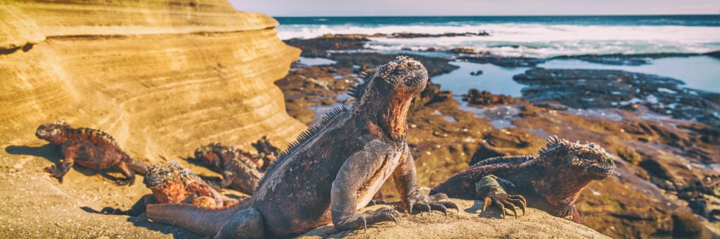 Galápagos National Park (Parque Nacional Galápagos) is one of Ecuador's 11 national parks in western South America, located on 13 volcanic islands of the same name, nearly 1,000 km (miles) off the country's Pacific coast. The main feature of the park is its unique fauna, including sea iguanas, turtles, and many other animals. It was here that Charles Darwin made a trip, after which he developed his theory about the origin of species on earth. The park is also known for the volcanic islands themselves, starting with its highest and the most prominent mountain, the active Volcán La Cumbre (1,481 m / 4,859 ft). In total there are 25 named mountains in Parque Nacional Galápagos.