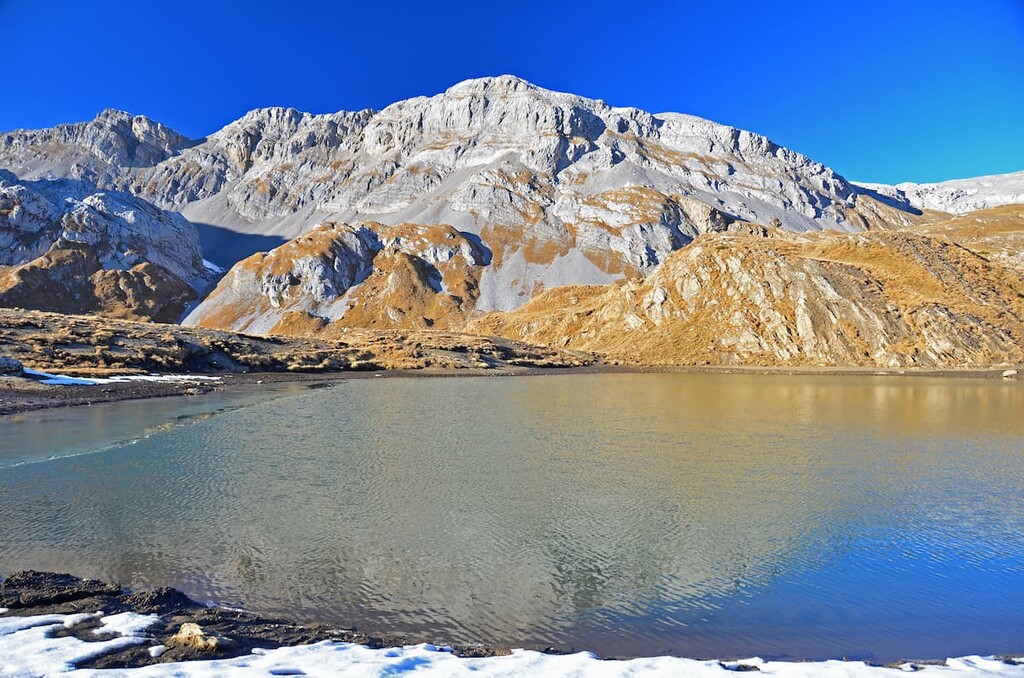 Once at Gemmi Pass, hikers can descend back down or take a gondola ride to Leukerbad where there are thermal baths. This point-to-point trail is 9.6 km (6 miles) long with 526 m (1,725 ft) of elevation gain.