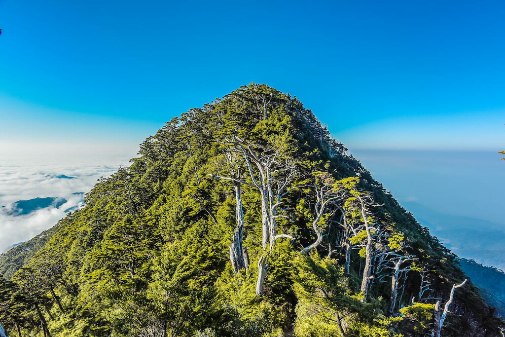 After an exhausting climb to the summit, hikers can appreciate the alpine shrubbery sprouting above the weightless dollops of creamy clouds. To the north, hikers can note Taiwan’s tallest peak, Yushan, in the distance.