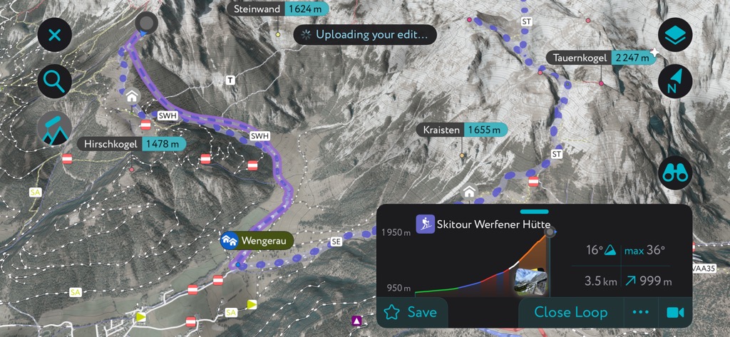 We've recently added several helpful features to the PeakVisor App, like local weather reports, including snow depths. Plus, you'll find details on thousands of mountain huts, with information on overnight accommodation, opening hours, and dining options. You can even use our Hiking Map on your desktop to make .gpx files for routes to follow on the app.