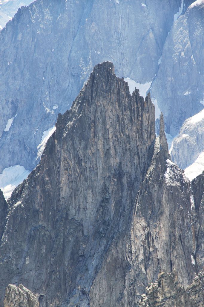 It stands on a ridge separating the Entrèves glacier from the Brenva glacier, yet is somewhat overshadowed by its larger neighbours, such as the Aiguille Blanche and the Aiguille Noire de Peuterey. Nevertheless, it is a distinctive peak, offering a number of very challenging climbs, especially on its east face which consists of vertical granite flakes and cracks. On its northern side stands a distinctive, slender rock pinnacle about 60 metres high, known as the Père Eternel.