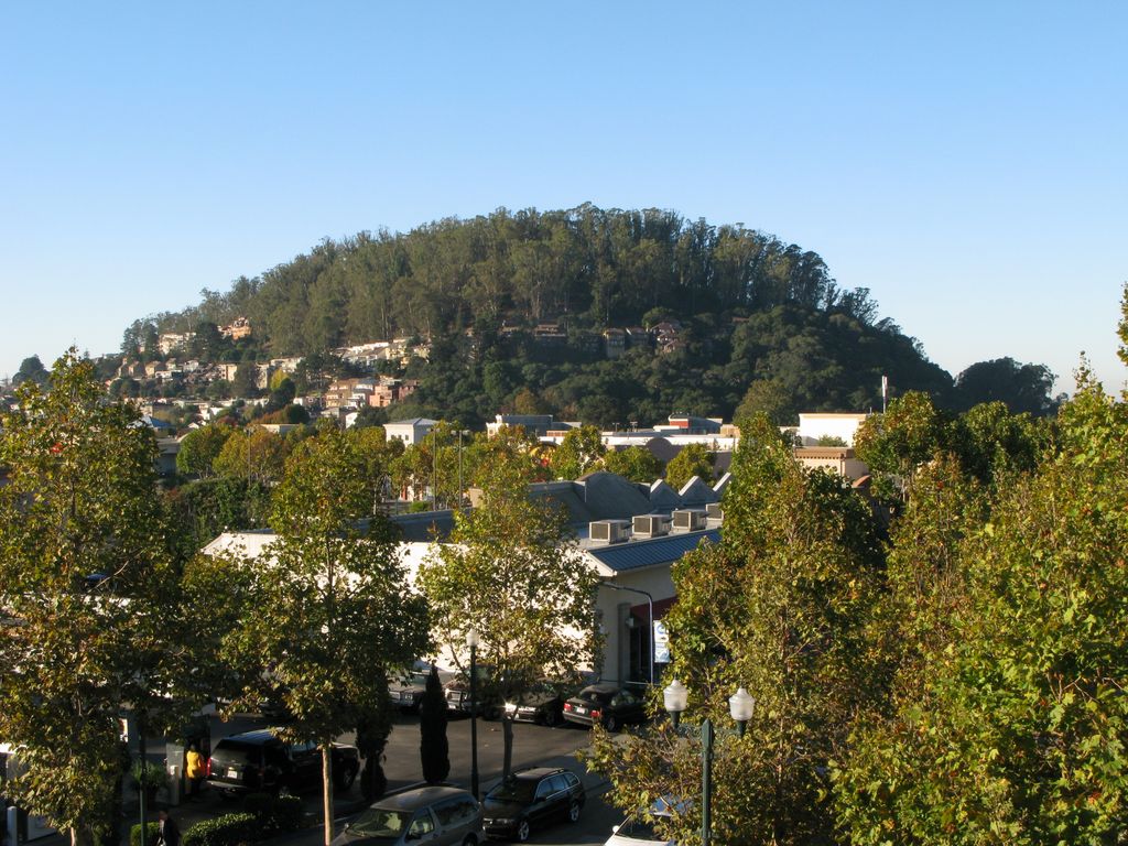 Albany Hill is a prominent hill along the east shore of San Francisco Bay in the city of Albany, California. Geologically, the hill is predominantly Jurassic sandstone, carried to the western edge of North America on the Pacific Plate and scraped off there in the course of subduction. Albany Hill is part of a range of hills uplifted long before today's Berkeley Hills. These hills include Fleming Point and Point Isabel (their summits dynamited away), Brooks Island, the Potrero San Pablo, and the hills across San Pablo Strait.