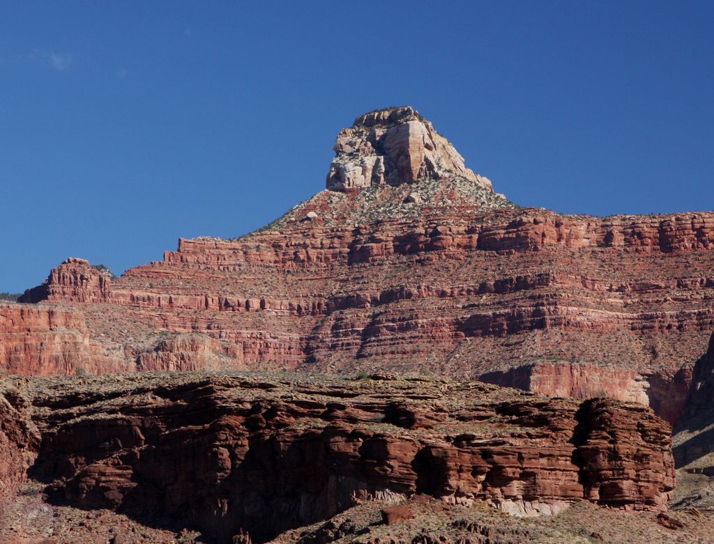 Buddha Temple is a 7,212-foot-elevation (2,198-meter) summit located in the Grand Canyon, in Coconino County of northern Arizona, in the Southwestern United States. It is situated 6.5 miles (10.5 km) due north of the Mather Point overlook on the canyon's South Rim, and four miles southwest of the North Rim's Bright Angel Point. Topographic relief is significant as it rises over 3,800 feet (1,200 meters) in two miles above Bright Angel Canyon to the east, and 3,000 feet in less than one mile above Haunted Canyon to the immediate west. Its neighbors include Manu Temple 1.5 miles (2.4 km) to the northeast, Isis Temple 2.3 miles to the southwest, Zoroaster Temple 3.8 miles to the southeast, and Deva Temple, 3.5 miles to the east. Buddha Temple was named by Henry Gannett, a geographer for Clarence Dutton, in following Dutton's practice of naming features in the Grand Canyon after mythological deities, in this case Buddha. This geographical feature's name was officially adopted in 1906 by the U.S. Board on Geographic Names. The first ascent of this butte was made in 1973 by Bruce Grubbs, Chauncey Parker, and Mark Brown via the Northwest Arete. According to the Köppen climate classification system, Buddha Temple is located in a Cold semi-arid climate zone.