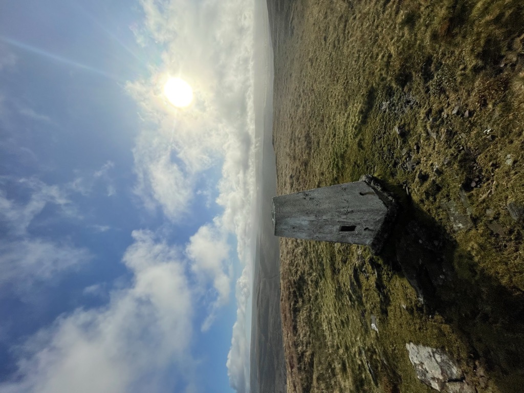 The hill is in the form of a broad flat-topped ridge whose summit lies at 663 m (2175 ft) and is crowned by a trig point. Its southern ridge is the least steep whereas its northern aspect is steep and craggy, having hosted a small glacier in the last ice age.