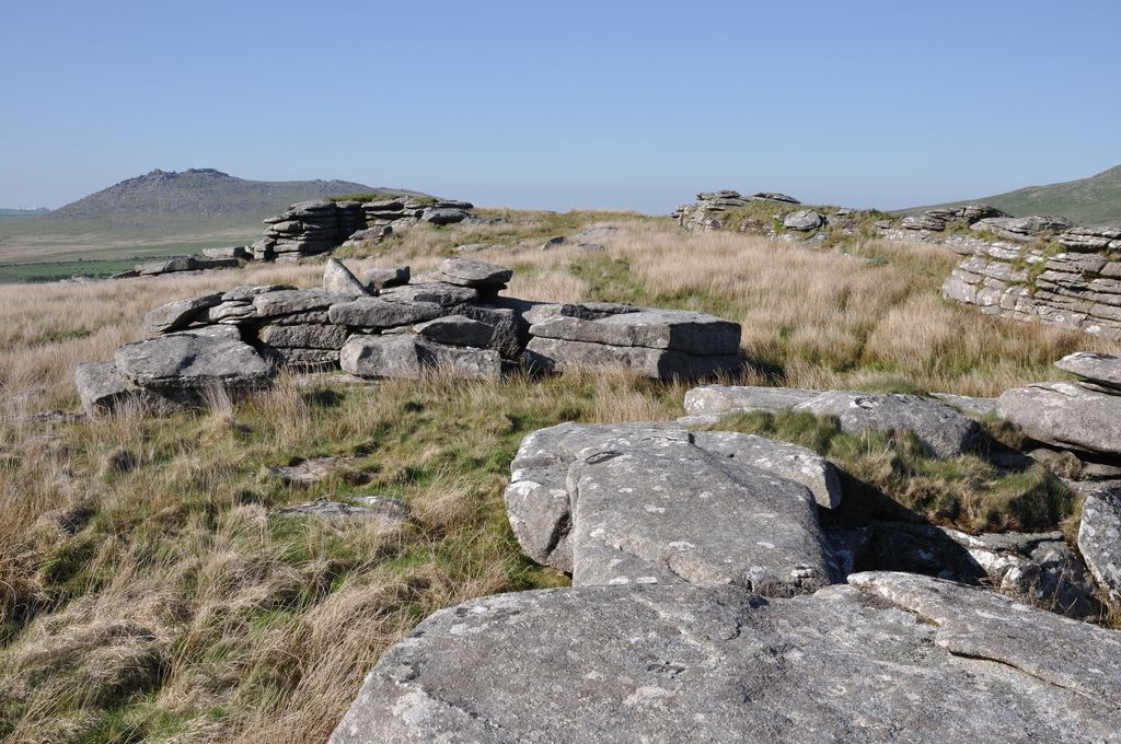 At the summit of Garrow Tor are granite rock outcrops and the hill also bears extensive evidence of early settlement, including a massive stone hedge, Bronze Age settlements and hut circles and Medieval settlements. Panoramic views from the summit include Caradon Hill to the south, Rough Tor and Brown Willy to the north, Butter's Tor to the east, clay country to the west and the Atlantic Ocean to the northwest.