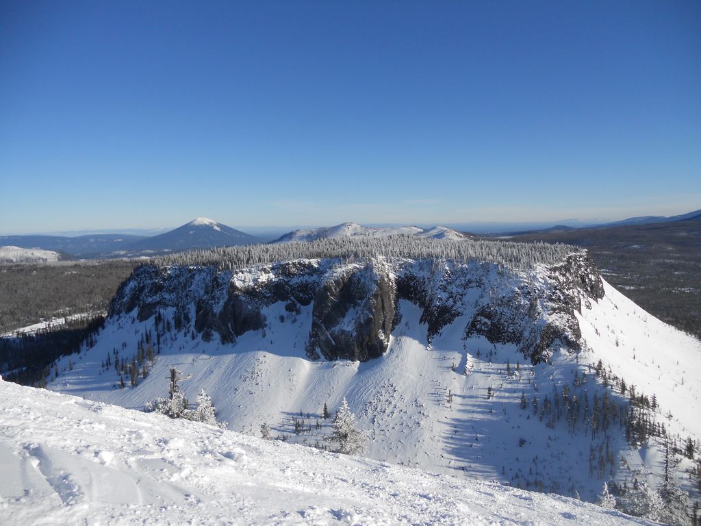 Hayrick Butte is a tuya, a type of subglacial volcano, in Linn County, Oregon. Located in the Willamette National Forest near Santiam Pass, it lies adjacent to the cinder cone Hoodoo Butte, which has a ski area. Hayrick Butte likely formed when lava erupted underneath an overlying glacier or ice sheet, producing the flat top with near-vertical walls along the ice-contact margin as the lava cooled and hardened. Hayrick Butte has a nearly flat plateau about 0.5 miles (0.80 km) across and steep walls rising about 700 feet (0.21 km) above its surroundings. A cartographer accidentally switched the names for nearby Hoodoo Butte and Hayrick Butte; the word "hoodoo" usually refers to rock piles and pinnacles like those observed at Hayrick Butte.