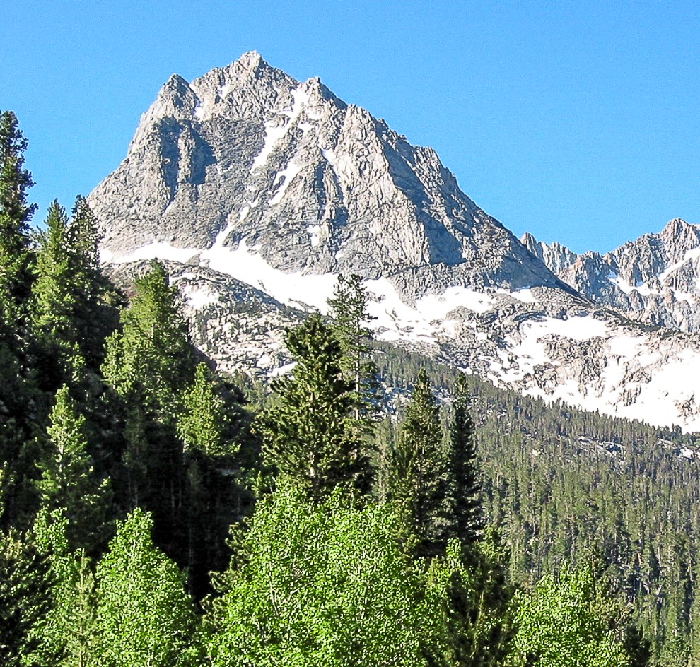 Hurd Peak is a 12,237-foot-elevation (3,730-meter) mountain summit located one mile east of the crest of the Sierra Nevada mountain range in Inyo County of northern California, United States. Surrounded by lakes, it is situated in the John Muir Wilderness, on land managed by Inyo National Forest. It is approximately 16 miles (26 km) west of the community of Big Pine, 2 miles (3.2 km) west of Picture Puzzle, and 1.23 miles (1.98 km) north of parent Mount Goode. Topographic relief is significant as the north aspect rises nearly 2,500 feet (760 meters) above South Lake in approximately one mile.