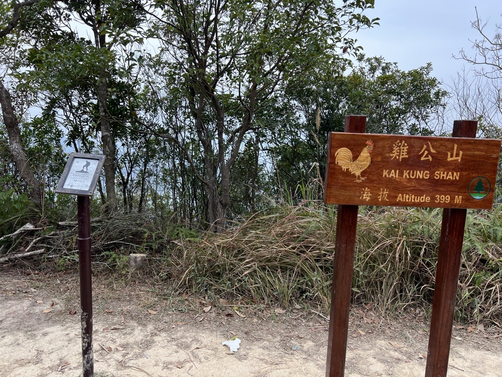 Kai Kung Shan (Chinese: 雞公山) is a mountain which lies within the western part of Sai Kung Peninsula in northeastern Hong Kong. Its summit is 399 metres (1,309 ft) above sea level. Stage 3 of the MacLehose Trail traverses this mountain.