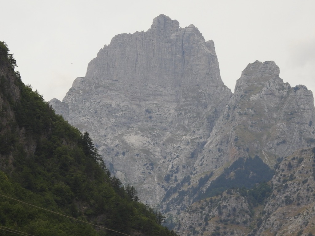 Maja e Thatë (lit. 'Dry Peak') is a 2,406-metre-high (7,894 ft) mountain peak of the Albanian Alps (Accursed Mountains) in Albania. It is located within Valbonë Valley National Park, roughly 2 km (1 mi) northwest of Valbonë and rises more than 1,500 m (4,921 ft) above the village. The mountain's southern and western lower slopes are relatively rich in beech and pine forests, while the higher slopes consist of very steep dolomite and limestone rock walls, suitable for mountaineering and rock climbing.