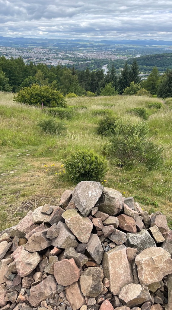 Moncreiffe Hill (also known as Moredun Hill) is a long, wooded ridge that lies south of Perth, Scotland. It can be easily seen on the right during the final stages of the drive north towards Perth on the M90 motorway. Unlike most Scottish hills, the routes to the summit are almost entirely under tree cover, although the summit area, which is known as Moredun Top, is clear and offers impressive views over Perth and the River Tay.