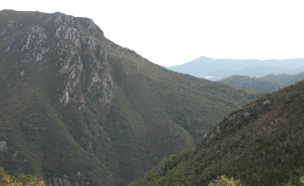 One of the smaller peaks in the West Coast Range, the mountain comprises a large 200-metre (660 ft) outcrop and rock face on its southern side above the King River Gorge just west of the Crotty Dam – parts of which are visible along the river gorge from the West Coast Wilderness Railway where it commences following the King River.
