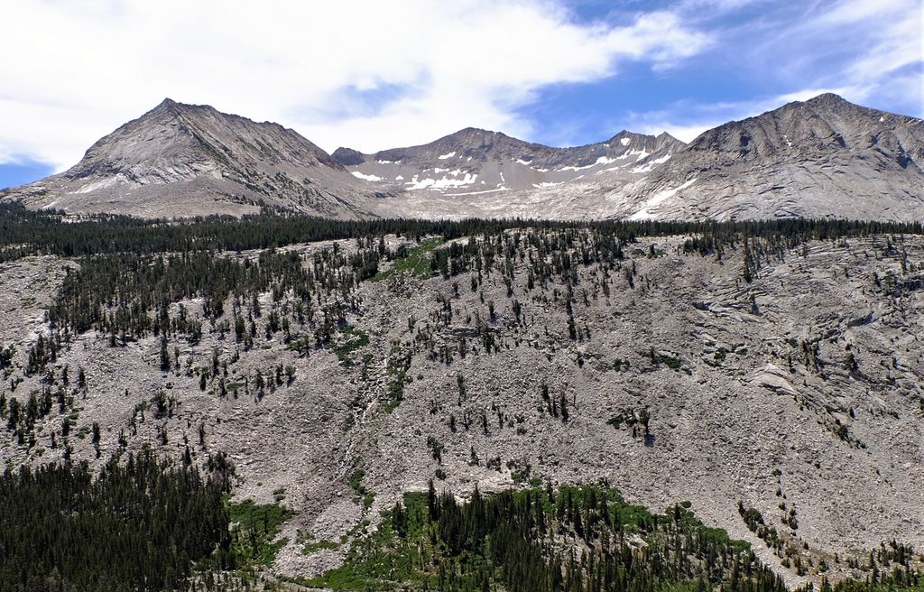 Mount Ickes is a 12,959-foot-elevation (3,950-meter) mountain summit located west of the crest of the Sierra Nevada mountain range, in Fresno County of northern California, United States. It is situated in eastern Kings Canyon National Park, 13.5 miles (21.7 km) northwest of the community of Independence, 1.5 mile west of Pinchot Pass, and 2 miles (3.2 km) west of Mount Wynne, which is the nearest higher neighbor. Other nearby peaks include Crater Mountain 1.3 miles (2.1 km) to the southeast, Striped Mountain 3 miles (4.8 km) to the northeast, Arrow Peak, three miles (4.8 km) to the west, and Mount Ruskin four miles (6.4 km) to the northwest. Mount Ickes ranks as the 159th highest summit in California. Topographic relief is significant as the north aspect rises 3,080 feet (940 meters) in 2.5 miles. The approach to this remote peak is made via the John Muir Trail which passes to the east of the mountain. The mountain's name was officially adopted in 1964 by the United States Board on Geographic Names to honor Harold L. Ickes (1874–1952), who was responsible for implementing much of President Franklin D. Roosevelt's New Deal as Secretary of the Interior from 1933 to 1946 and was instrumental in establishing Kings Canyon National Park.
