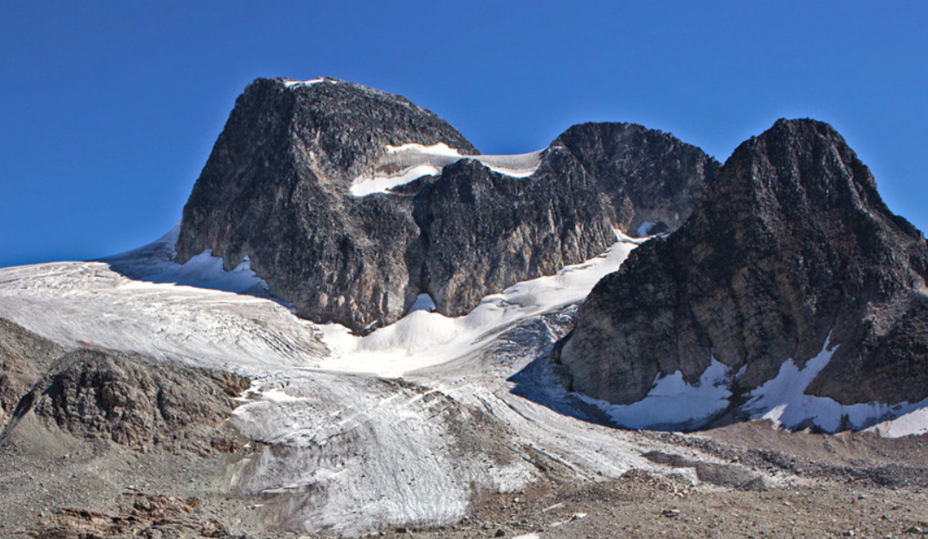 Mount Monica is a 3,072-metre (10,079-foot) mountain summit located in the Purcell Mountains in southeast British Columbia, Canada. It is situated 56 km (35 mi) north of Kaslo, 48 km (30 mi) west of Invermere, immediately south of Starbird Pass, 7 km (4.3 mi) east of Mount Macduff, and its nearest higher peak is Jumbo Mountain, 9 km (5.6 mi) to the east. The first ascent of the mountain was made in August 1911 by E. W. Harnden, M. Coffin, and J. Poorman via the southeast ridge. The peak was named by Edward Warren Harnden after his mother. The mountain's name was officially adopted June 9, 1960, by the Geographical Names Board of Canada.