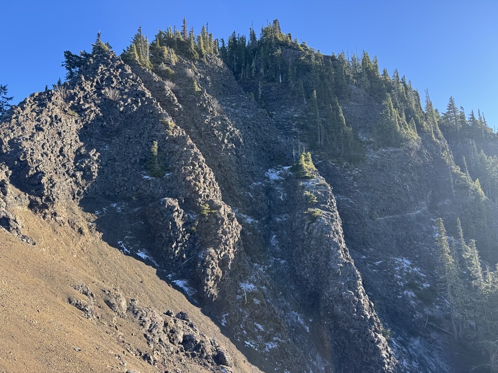 The trail to the summit starts near the Storm King Ranger Station, and initially follows the trail to Marymere Falls but branches to the north after a short distance. The first 1.9 miles (3.1 km) is on maintained trail but the rest of the climb involves scrambling on loose rock with some exposure.