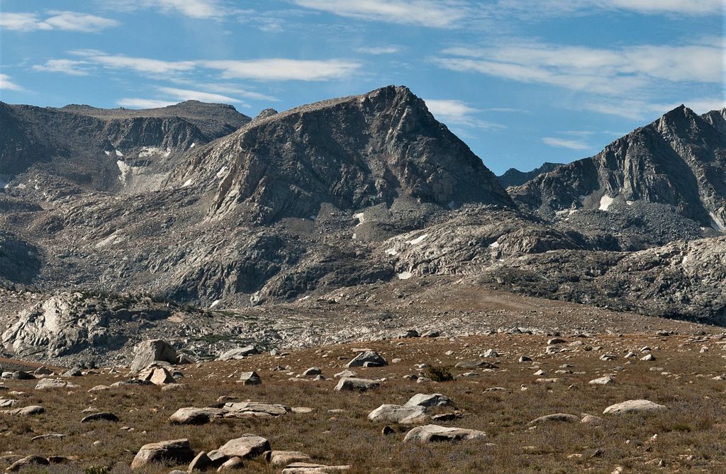 Muriel Peak is a 12,937-foot-elevation (3,943 meter) double summit mountain located in the Sierra Nevada mountain range in Fresno County, California, United States. The true summit is set within the John Muir Wilderness on land managed by Sierra National Forest, whereas the slightly lower south summit is on the boundary shared with Kings Canyon National Park. It is situated one mile northeast of Mount Goethe and one mile south of Muriel Lake. Muriel Peak is the 167th-highest peak in California, and topographic relief is significant as the summit rises 1,600 feet (490 meters) above Muriel Lake.