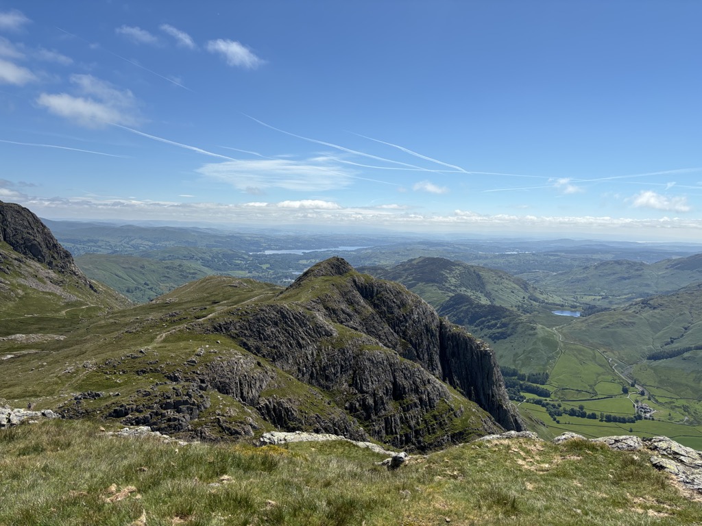 Pike of Stickle, also known as Pike o’ Stickle, is a fell in the English Lake District. It reaches a height of 709 metres (2,326 ft) and is situated in the central part of the national park in the valley of Great Langdale. The fell is one of three fells which make up the picturesque Langdale Pikes (the others being Harrison Stickle and Loft Crag), one of the best-known areas in Lakeland. A "stickle" is a hill with a steep prominent rocky top, while a "pike" is a hill with a peaked summit, the name being therefore partly tautological.