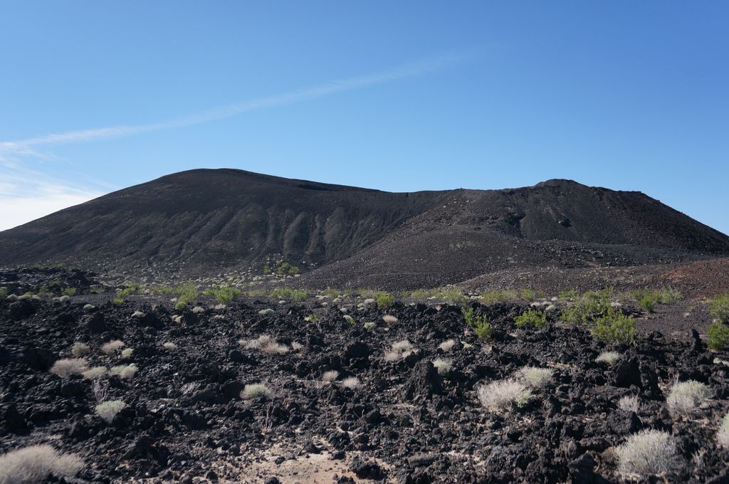 Pisgah Crater, or Pisgah Volcano, is a young volcanic cinder cone rising above a lava plain in the Mojave Desert, between Barstow and Needles, California in San Bernardino County, California. The volcanic peak is around 2.5 miles (4.0 km) south of historic U.S. Route 66-National Old Trails Highway and of Interstate 40, and west of the town of Ludlow. The volcano had a historic elevation of 2,638 feet (804 m), but has been reduced to 2,545 feet (776 m) due to mining.