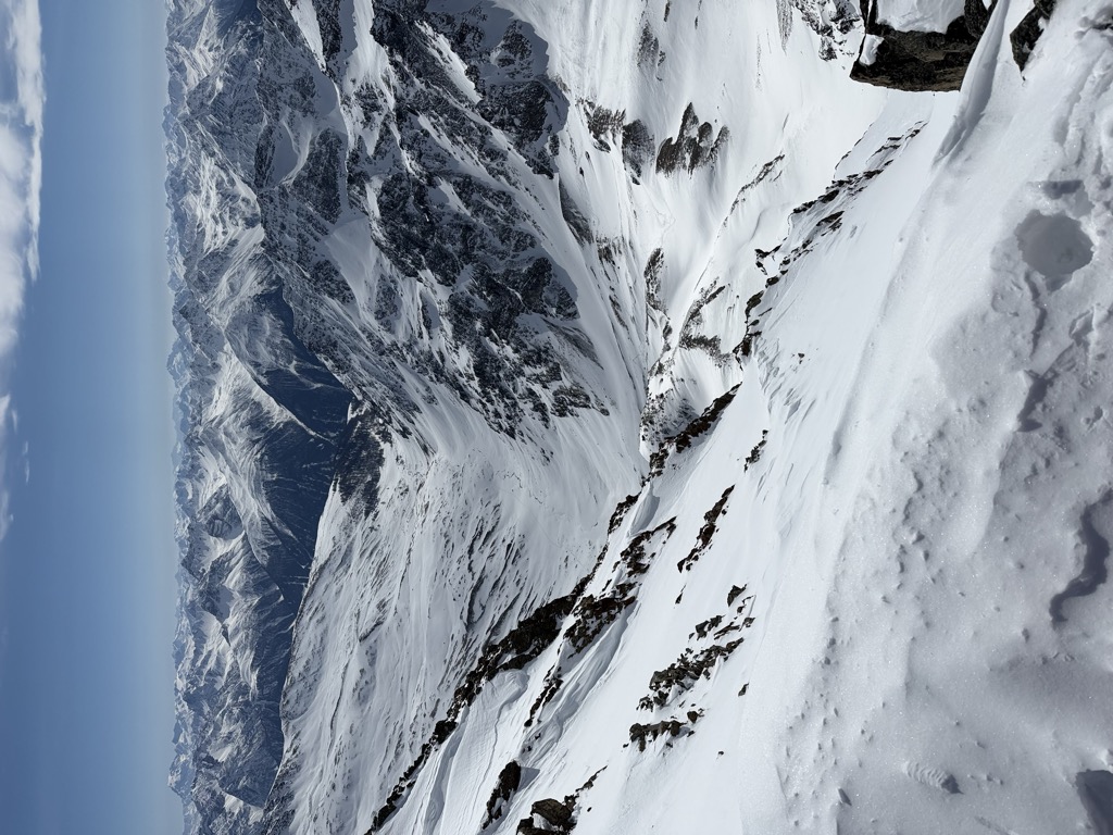 Piz Buin can be reached from the Wiesbadener hut, crossing the Vermunt glacier, climbing up the Wiesbadener ridge and hiking over the Ochsentaler Glacier to the Buin gap. From the gap there is a zigzag walk to the top, with only a 20 m (65 ft) steep step to surmount before reaching the relatively flat summit space, which has an old wooden cross on the very top. The border between Switzerland and Austria crosses the summit from East to West.