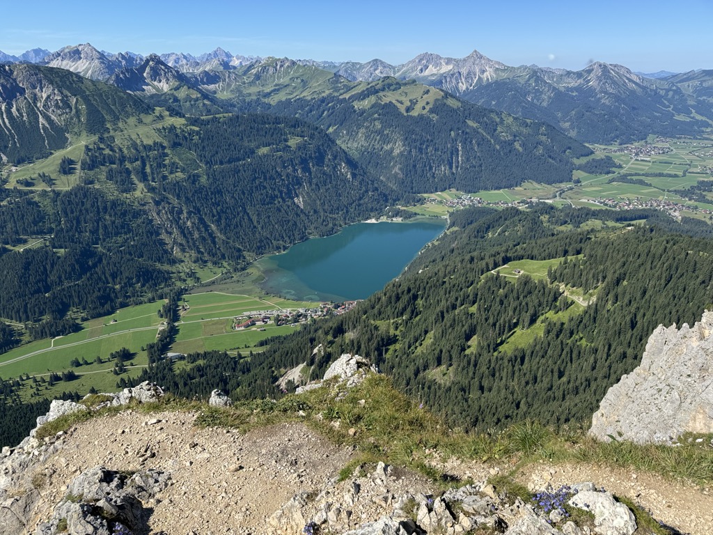 The Schartschrofen is a rocky summit, 1,968 m high, in the Tannheim Mountains, a sub-group of the Allgäu Alps. It lies northwest of the Rote Flüh and south of the col of Füssener Jöchl.