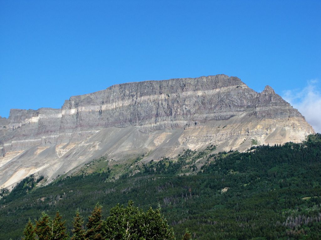 Singleshot Mountain (7,930 feet (2,417 m)) is located in the Lewis Range, Glacier National Park in the U.S. state of Montana. The mountain is easily seen from Saint Mary, Montana and was named after the single-shot fired from a rifle by George Bird Grinnell when dispatching a Bighorn sheep while hunting for food in 1885 during park explorations. The sedimentary layers of the Appekunny Formation are clearly displayed on the southeastern cliffs of Singleshot Mountain.