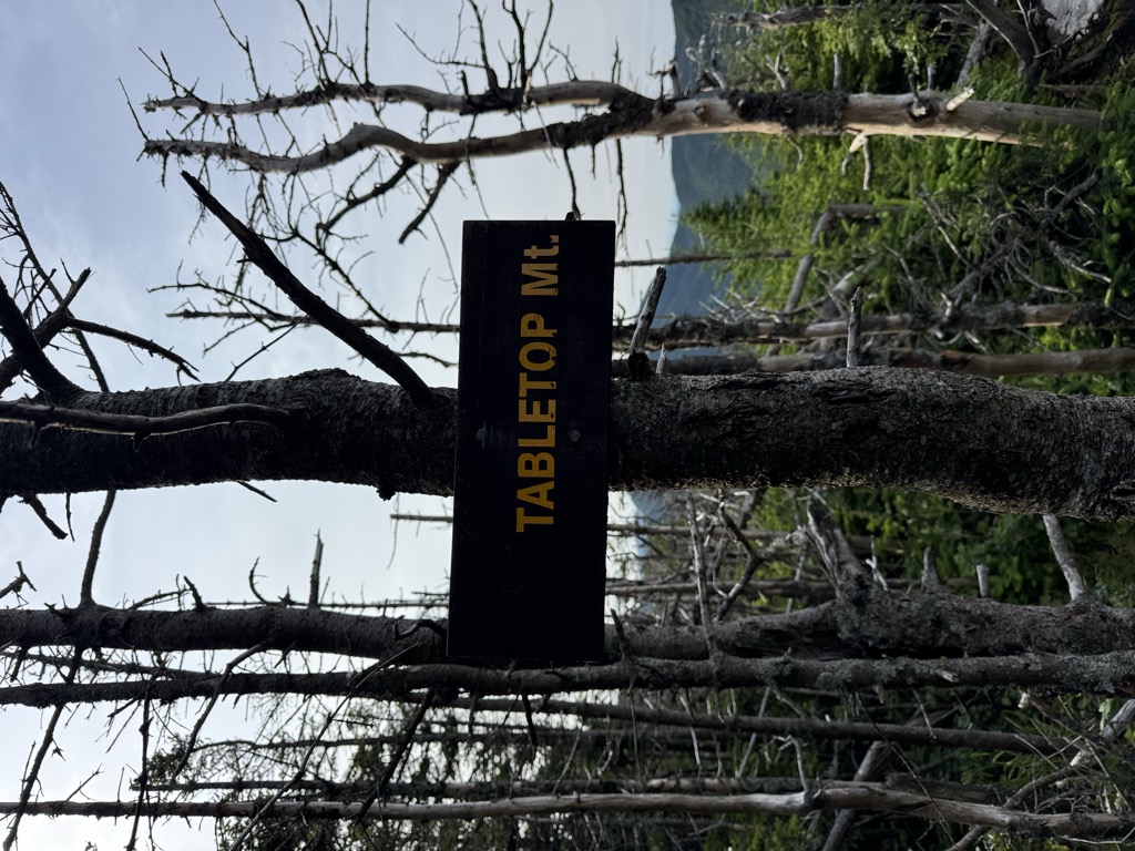 Table Top has three summits; the southernmost is the highest, followed by the middle peak at 4,308 ft (1,313 m) and the north peak at 4,216 ft (1,285 m).