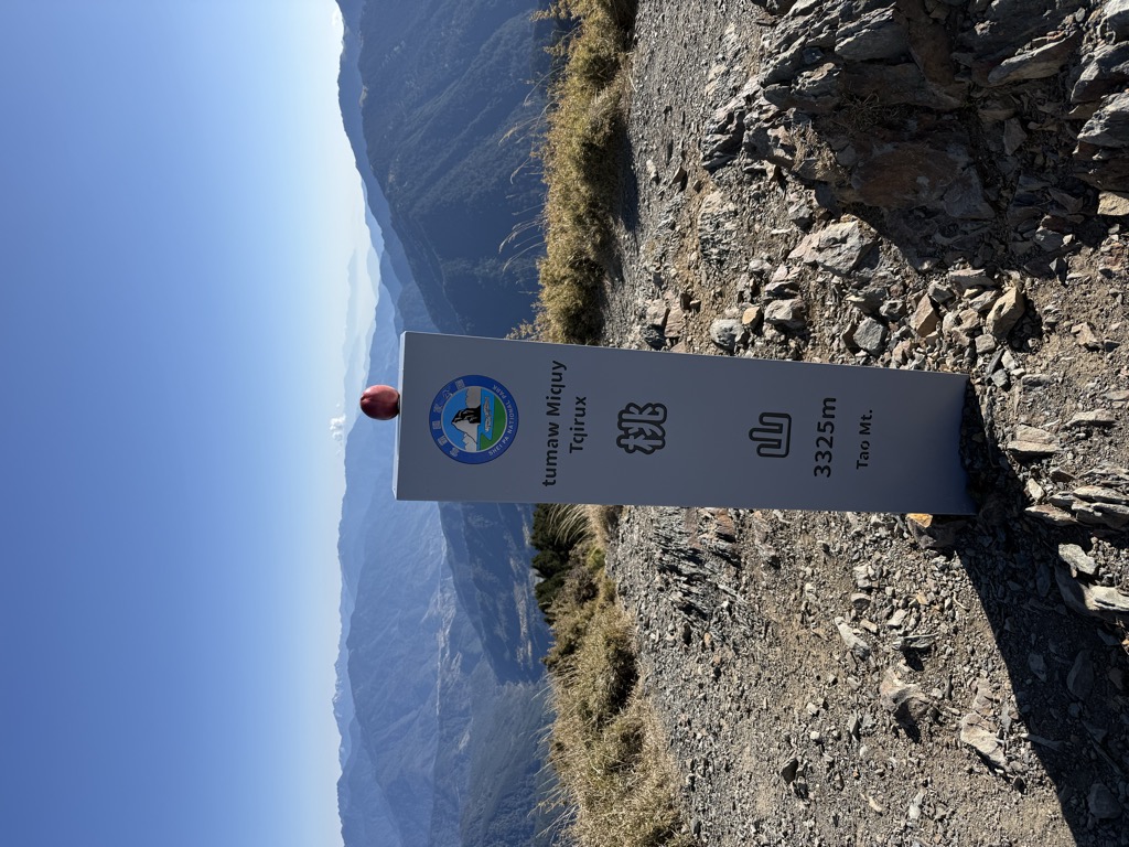 Mount Tao (Chinese: 桃山; pinyin: Tao Shān) is a 3,325-metre-high (10,909 ft) mountain located in the north of Wuling Farm and is one of the Snow Mountains group. The mountain is ranked 44 on the Taiwan hiking declination scale; it borders Jianshi ridge, Hsinchu County, Taichung City and Heping District, and is marked with peakpoint label no. 6327. In the local Atayal language the mountain is known as "B'bu Qba", meaning "fist hill". In Chinese the name translates to "Peach" mountain, due to the view from the southwest side.