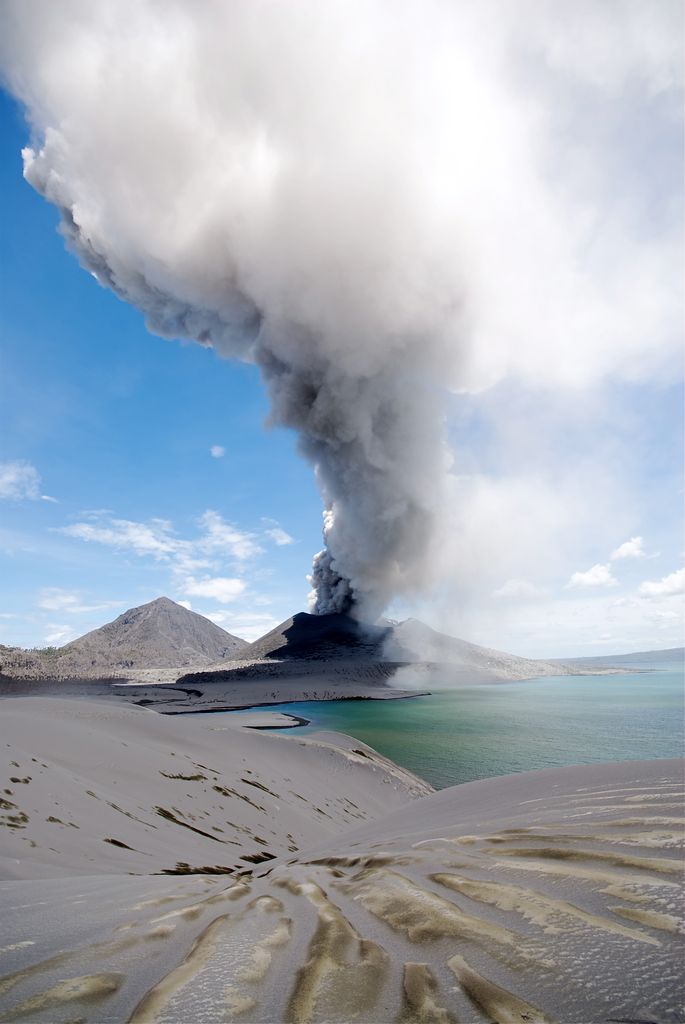 Tavurvur is an active stratovolcano near Rabaul, on the island of New Britain, in Papua New Guinea. It is a sub-vent of the Rabaul caldera and lies on the eastern rim of the larger feature. An eruption of the volcano largely destroyed the nearby town of Rabaul in 1994.