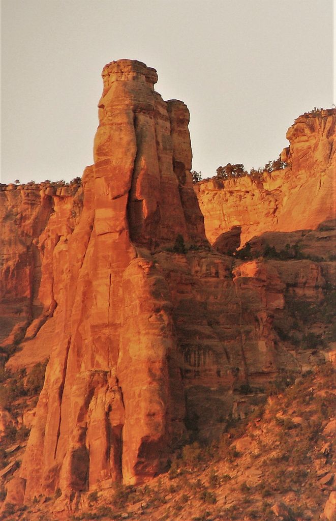 Terra Tower is a 5,790-foot-elevation (1,760-meter) sandstone pillar located in Colorado National Monument, in Mesa County of western Colorado, United States. This 350-foot-high tower is situated on the Redlands escarpment, approximately seven miles west of the community of Grand Junction. Topographic relief is significant as it rises 1,000 feet (300 meters) above the Tiara Rado Golf Course in approximately one-half mile. The first ascent of the summit was made in 1979 by Harvey Carter and Tom Merrill via the class 5.11 route, Way Bazaar.