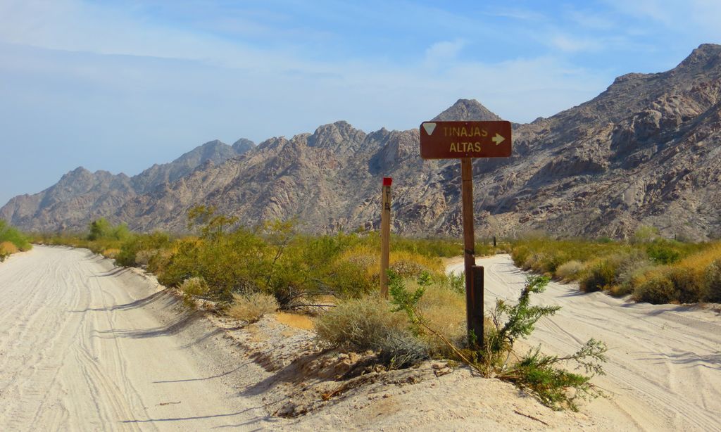 The Tinajas Altas Mountains (O'odham: Uʼuva:k or Uʼuv Oopad) are an extremely arid northwest–southeast trending mountain range in southern Yuma County, Arizona, approximately 35 mi southeast of Yuma, Arizona. The southern end of the range extends approximately one mile into the northwestern Mexican state of Sonora on the northern perimeter of the Gran Desierto de Altar. The range is about 22 mi in length and about 4 mi wide at its widest point. The highpoint of the range is unnamed and is 2,766 feet (843 meters) above sea level and is located at 32°16'26"N, 114°02'48"W (NAD 1983 datum). Aside from the portion of the range in Mexico, the entirety of the range lies within the Barry M. Goldwater Air Force Range. They lie at the heart of the traditional homeland of the Hia C-eḍ O'odham people.