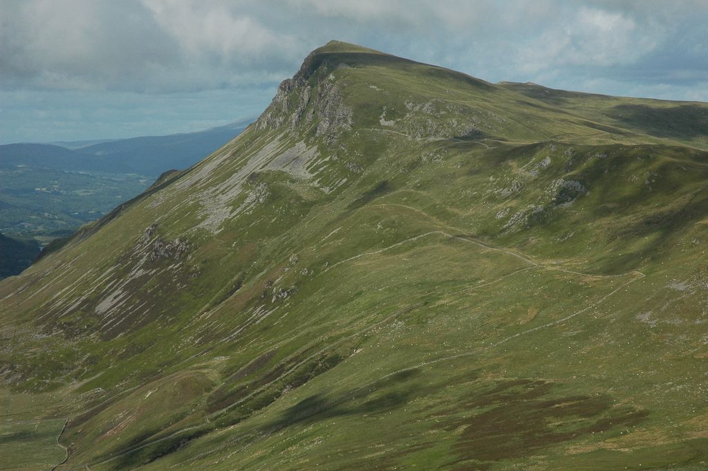 The summit is grassy and marked by a few stones. To the east of the summit lies the large ancient cairn, Carnedd Lwyd. It is often climbed in combination with Craig-y-llyn.