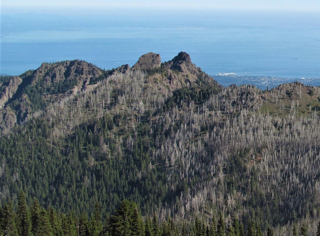 Unicorn Peak is a 5,100-foot-elevation (1,554-meter) mountain summit located within Olympic National Park in Clallam County of Washington state. Unicorn Peak is situated seven miles southwest of Port Angeles and three miles north-northwest of the park's Hurricane Ridge visitor center, in Daniel J. Evans Wilderness. Precipitation runoff from the mountain drains west to the Elwha River via Little River and Griff Creek. Topographic relief is significant as the west aspect rises 4,800 feet (1,463 meters) above the Elwha valley in approximately three miles.