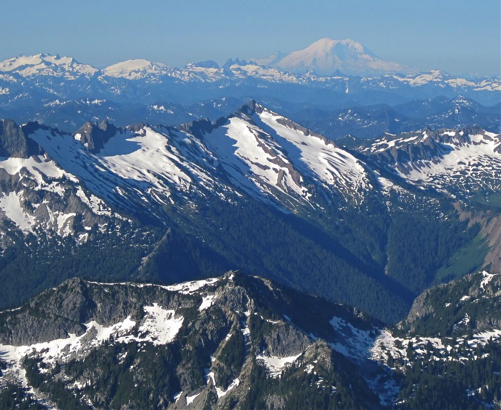 Whittier Peak is a 7,281-foot (2,219-metre) mountain summit located in the Glacier Peak Wilderness of the North Cascades in Washington state. The mountain is situated in Chelan County, in the Wenatchee National Forest. Its nearest higher neighbor is Mount David, 2.26 mi (3.64 km) to the northeast, and Indian Head Peak is 5.2 mi (8.4 km) to the northwest. Precipitation runoff from Whittier Peak drains into tributaries of the Wenatchee River. The peak was named for poet John Greenleaf Whittier by Albert Hale Sylvester, pioneer surveyor, explorer, topographer, and forest supervisor in the Cascades who named thousands of natural features. Other peaks in the immediate vicinity named by Sylvester after poets include Irving Peak, Poe Mountain, Longfellow Mountain, and Bryant Peak.