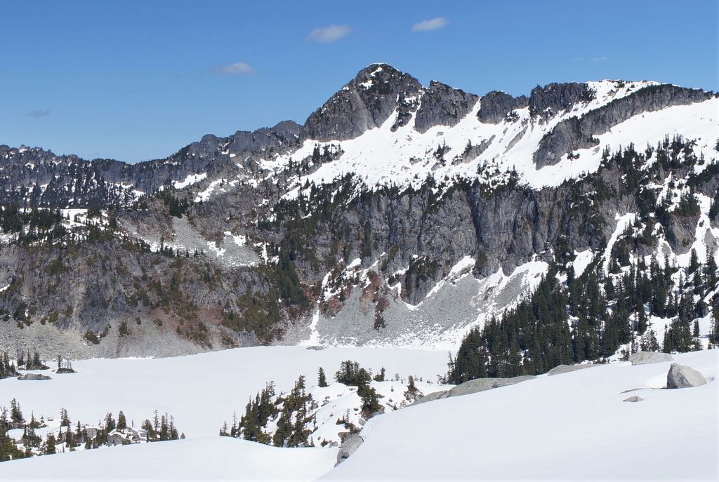 Wild Goat Peak is a 6,305-foot (1,922-metre) mountain summit located above the eastern shore of Gold Lake, in eastern King County of Washington state. It's part of the Cascade Range, and is situated in the Alpine Lakes Wilderness, on land managed by Mount Baker-Snoqualmie National Forest. Precipitation runoff from the mountain drains into tributaries of the Snoqualmie and Skykomish Rivers. The nearest higher neighbor is Big Snow Mountain, 1.91 mi (3.07 km) to the southwest. This peak was once called "Big Snowy".