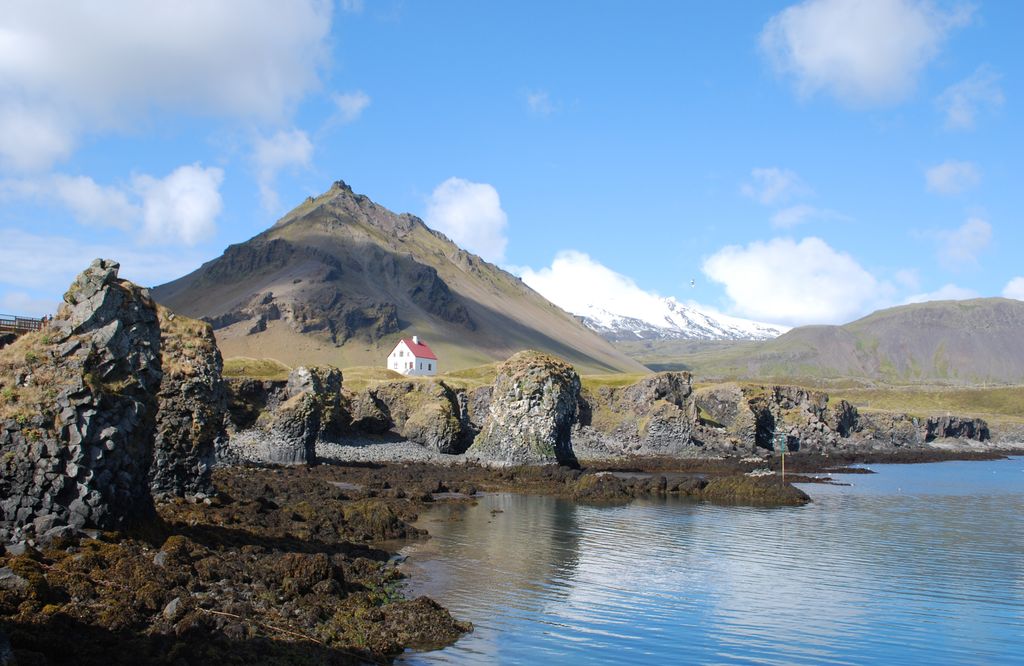 Arnarstapi (Icelandic pronunciation: [ˈa(r)tnarˌstaːpɪ]) or Stapi is a small fishing village at the foot of Mt. Stapafell [ˈstaːpaˌfɛtl̥] between Hellnar village and Breiðavík [ˈpreiːðaˌviːk] farms on the southern side of Snæfellsnes, Iceland. Placenames in the vicinity of Arnarstapi and nearby Hellnar village are inspired by Bárðar saga Snæfellsáss, an Icelandic saga relating the story of Bárður, a half human and half ogre. Arnarstapi was a natural site for landings and harbor for small vessels, and therefore ideal for a shipping port. In the olden days, Arnarstapi was thus from very early on, a busy fishing port and commercial centre servicing the West coast area under the Danish crown and a merchant monopoly of Denmark was in effect from 1565. From then on and through the 17th and 18th century, agents of the Danish crown had custodial power over Arnarstapi and commercial rights by royal appointment over nearby lands, formerly owned by Helgafell monastery and monopoly of all trade in the area. Several old houses from that time, each with its own unique history, can be seen at Arnarstapi, the old Amtmannshús (The Danish Prefect's Residence (1774–1787) having a history of its own, it having been moved in 1849 to nearby Vogur á Mýrum [ˈvouː(ɣ)ʏr auː ˈmiːrʏm], where it stayed until 1983, when it was moved back again to Arnarstapi in 1985 and declared a historical site in 1990. There resided amongst other notables, Danish Prefect Bjarni Thorsteinsson (1821–1849), whose son was renowned poet and writer Steingrímur Thorsteinsson. Today Arnarstapi is still a somewhat busy harbor during the summer months serving private fishing and recreational vessels as well with its maintained docks that were renewed in 2002. Being a popular destination of tourists in summer, Arnarstapi is today a thriving centre for local tourism activities where there is a variety of natural and culinary attractions as well and a cluster of second homes are located in and around the village. There is much beauty to be found in nearby attractions, and an old horse trail past Neðstavatn [ˈnɛðstaˌvahtn̥] is now a popular hiking trail across the lava and along the beach between Arnarstapi and Hellnar. This walk is about one hour. The lava field is called Hellnahraun, and its coast where at its westernmost edge can be found the ancient small village of Hellnar is a natural preserve. Along the coast there are some unique rock formations to be seen. There the waves of the ocean play along with the sun and the daylight to produce a natural show of which the most spectacular can be experienced at the cliff Gatklettur [ˈkatˌkʰlɛhtʏr̥], and the rifts Hundagjá [ˈhʏntaˌcauː], Miðgjá [ˈmɪðˌcauː] and Músagjá [ˈmuːsaˌcauː]. Near Arnarstapi you will also find many other interesting natural wonders like Rauðfeldsgjá, Dritvík [ˈtrɪtˌviːk], Bjarnarfoss [ˈpja(r)tnarˌfɔsː] and Lóndrangar.