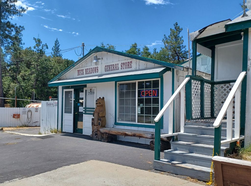 Buck Meadows (formerly Hamilton's and Hamilton's Station) is a census-designated place in Mariposa County, California, United States. It is located 2 miles (3 km) east-northeast of Smith Peak, at an elevation of 3,015 feet (919 m). The population was 21 at the 2020 census. Buck Meadows lies just south of the Tuolumne County line. It is on State Route 120, 11 miles (18 km) east of Groveland. The ZIP Code for this community is shared with Groveland (95321), and wired telephones work out of Groveland's telephone exchange with numbers following the format (209) 962-xxxx. The official U.S. Geological Survey coordinates for the community are 37°48′46″N 120°03′52″W. The area is named for Buck's Meadow 37°48′43″N 120°07′07″W which lies at the corner of SR120 and Smith Station Road. According to The Big Oak Flat Road, a variant name for the area was Hamilton's Station. This may have referred to the name of a stagecoach stop. 2.5 miles (4.0 km) east of U.S.F.S. Buck Meadows Fire Station, "Rim of the World" overlooks the canyon containing the South Fork of the Tuolumne River. Further east, visitors on hot summer days can cool off at a Stanislaus National Forest picnic area called "Rainbow Pool". The area is on the south side of SR120 2.25 miles east of U.S.F.S. Buck Meadows Fire Station. This community is home to Lucky Buck Restaurant on SR120. Southwest of town, the U.S. Forest Service, Stanislaus National Forest fire lookout at Smith Peak overlooks the area. A U.S.F.S. campground and fire station are also present in the community. The Pines campground is located at 37°49′05″N 120°05′36″W.