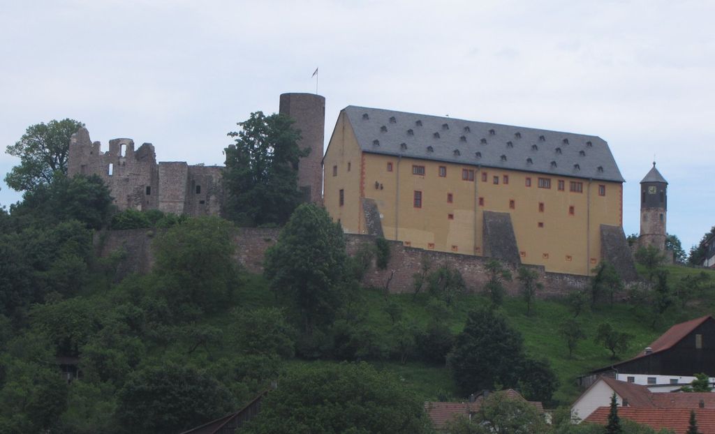 Schwarzenfels Castle (German: Burg Schwarzenfels) is a ruined castle in the village of Schwarzenfels in Hesse, Germany. The castle was damaged and became a ruin in 1648 near the end of the Thirty Years War, but the German State of Hesse has restored portions of the castle and maintained the grounds around the castle. The upper tower is completely restored. The restoration includes a modern spiral staircase, an observation deck, and a flagpole.